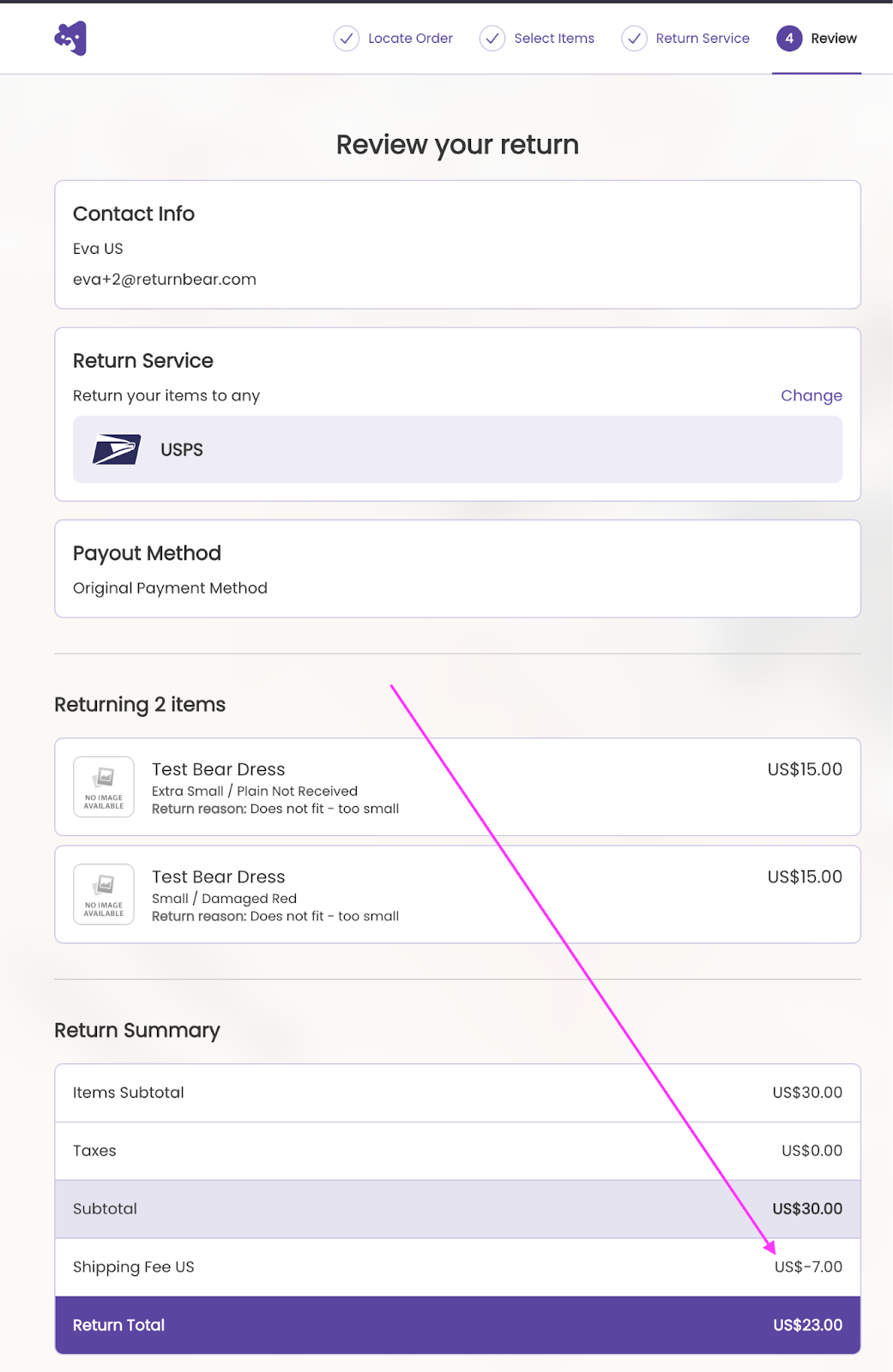 At this time, per-region return fees must be configured by the ReturnBear team. If you’d like to set up or update your regional fees, please reach out to Merchant Success or support@returnbear.com with the following details: