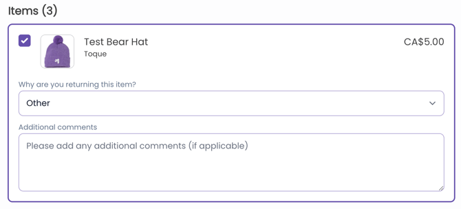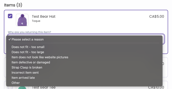 - Choose the return reason using the Why are you returning this item? drop-down menu