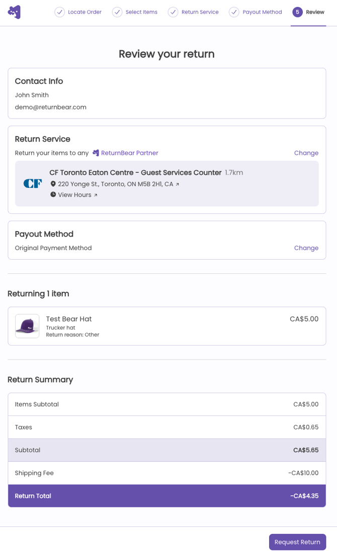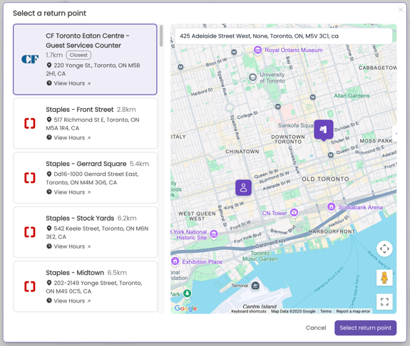 Regardless of which return point is chosen at this step, customers are always able to return their items to any ReturnBear Partner. A complete list of return points can be accessed here.