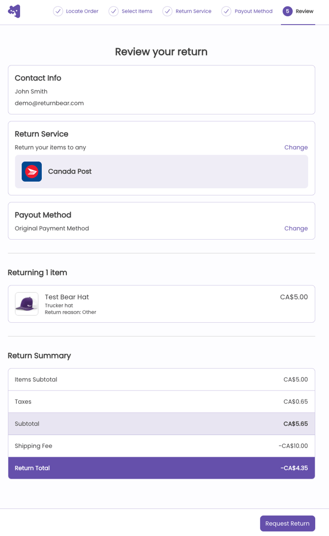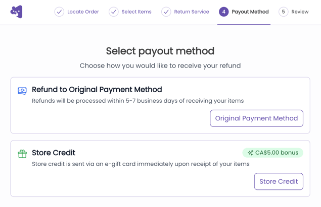 - The ReturnBear RMA Portal currently supports refunds to Original Payment Method only